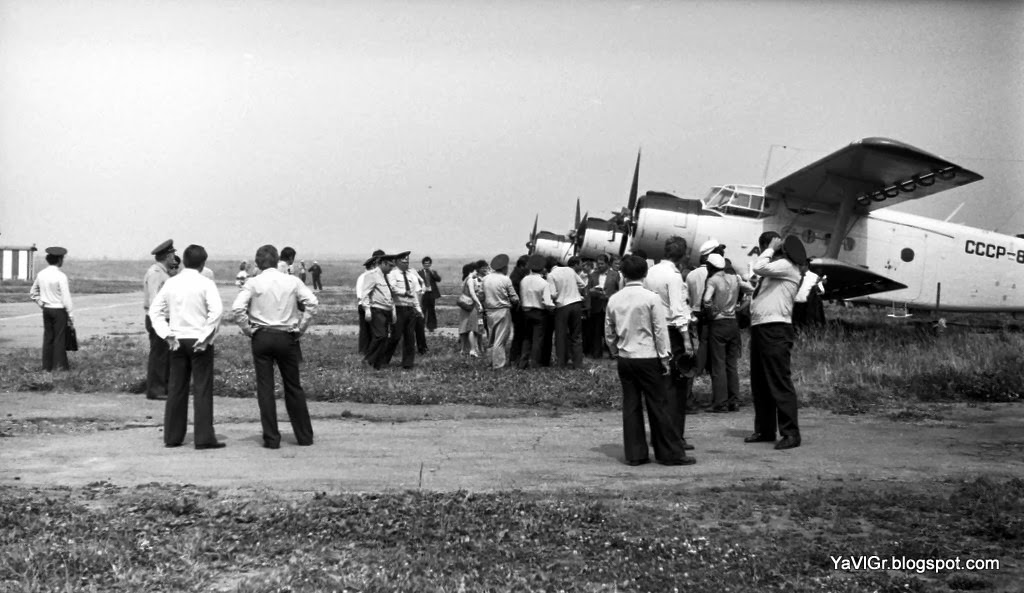 Командир самолета АН-2 Виталий Сиренко (1-й справа) его жена Лариса - фельдшер санчасти аэропорта и 2-й пилот Чигрин С. (2-й слева) со своей женой.